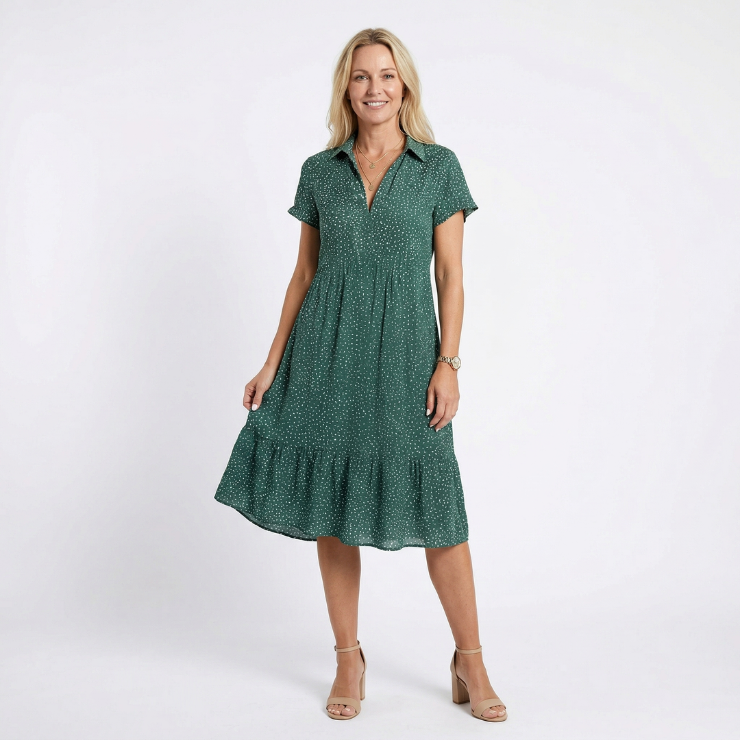 “I usually struggle with dresses that either cling too much or hide my shape completely. This one just flows — it skims over my midsection in the most flattering way without feeling tight. I felt confident the moment I put it on. My sister already asked for the link… twice.”